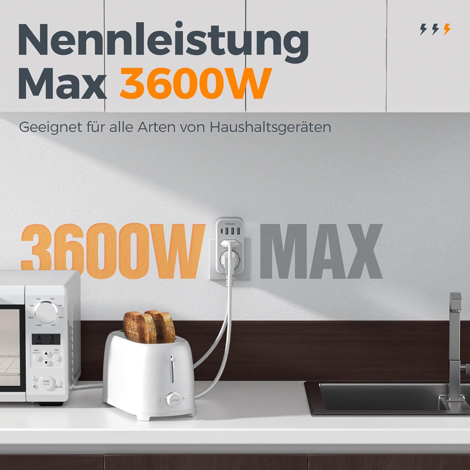 TESSAN 2-fach Steckdosenadapter mit USB, 3600W