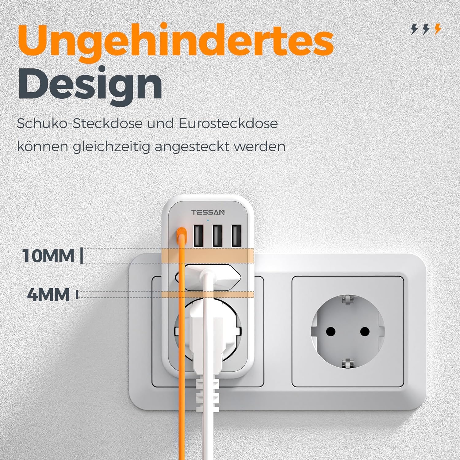 Ob in der Küche, im Schlafzimmer oder im Wohnzimmer – der TESSAN Steckdosenadapter ist für vielfältige Einsatzorte konzipiert. Eine dezente Kontrollanzeige zeigt den Betriebsstatus an, ohne dabei zu stören. Der Adapter sitzt fest in der Steckdose und bleibt auch bei häufiger Nutzung stabil.