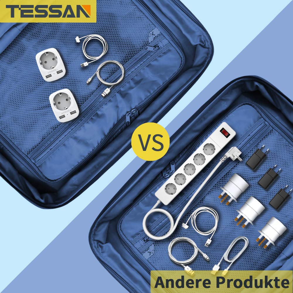 Mit der Größe von 7,1 x 5,4 x 6,9 cm ist dieser Weltstecker mit USB kompakt und leicht zu transportieren. Der Tessan Typ G Reiseadapter mit USB ist die beste Wahl für Ihre Reise. Effektives Reisezubehör für Großbritannien, England, Irland, Schottland, Malaysia.