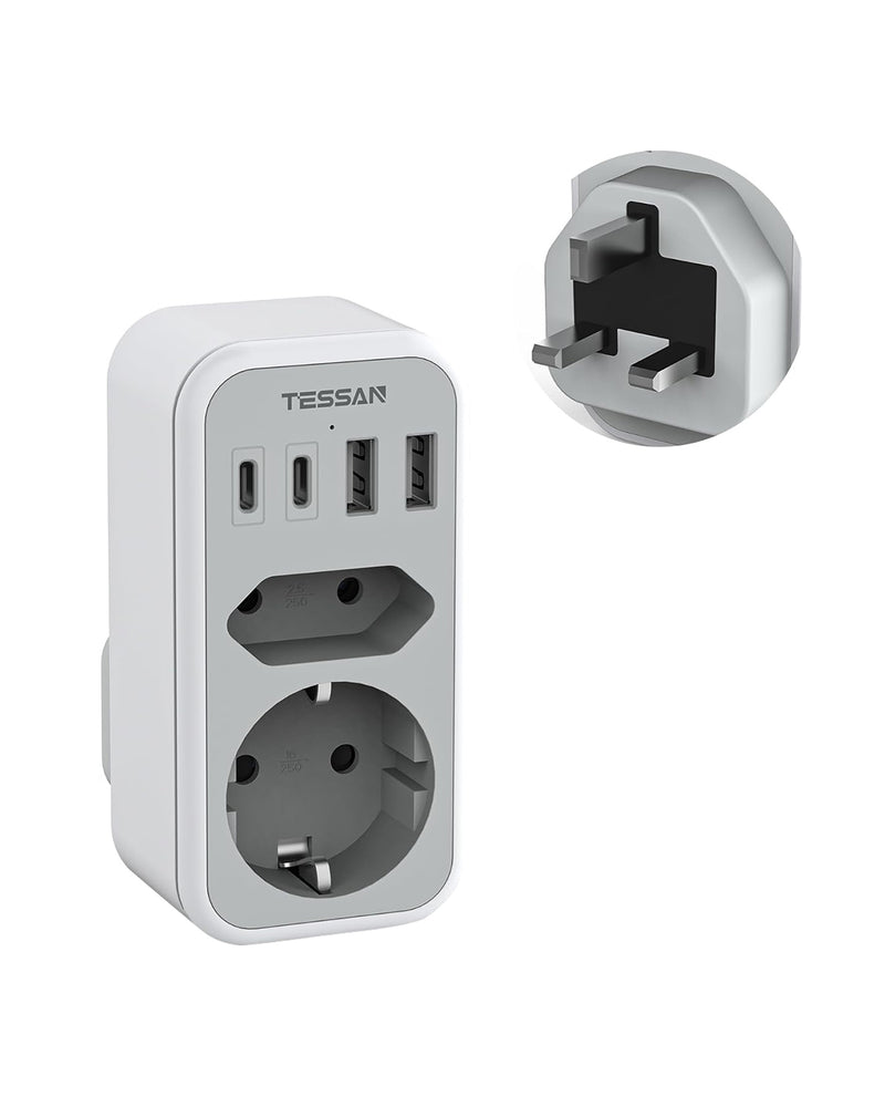 TESSAN 6 in 1 Reiseadapter UK mit 2 USB C und 2 USB A,Typ G