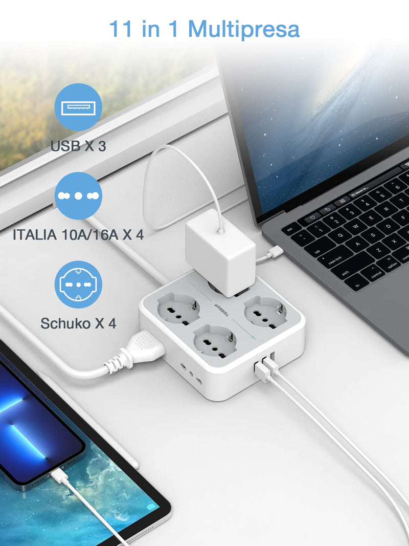 TESSAN 8 Fach Steckdosenleiste Steckerleiste mit 3 USB