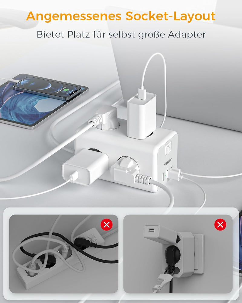 - Wandmontage: Größe 10 x 7,6 x 7,6 cm, der Mehrfachstecker für Steckdose verfügt an der Unterseite über zwei Wandaufhängelöcher zur Unterstützung der Wandaufhängung, Mehrfachsteckdosen USB C sparen Platz auf dem Desktop und sorgen für Ordnung.