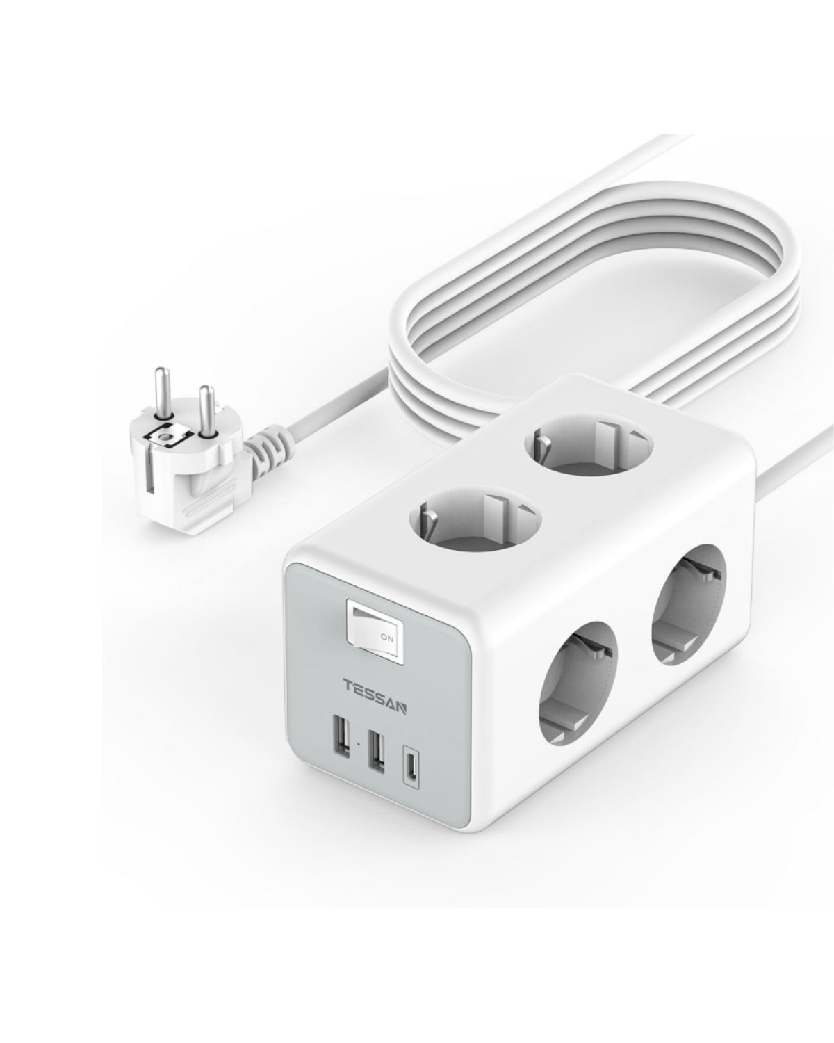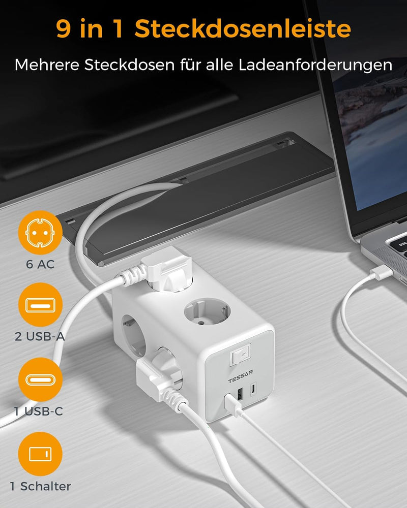 TESSAN 6 Fach Steckdosenleiste mit USB C mit 2m Verlängerungskabel