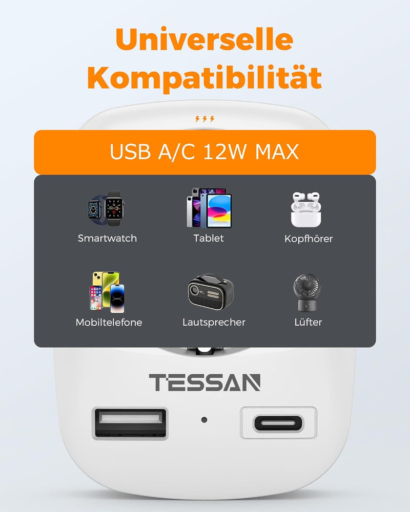 Wie bei allen TESSAN-Produkten steht die Sicherheit an erster Stelle. Das robuste Gehäuse und die präzise Verarbeitung verhindern gefährliche Wackelkontakte und bieten Ihnen die gewohnte Sicherheit für Ihre wertvolle Elektronik.