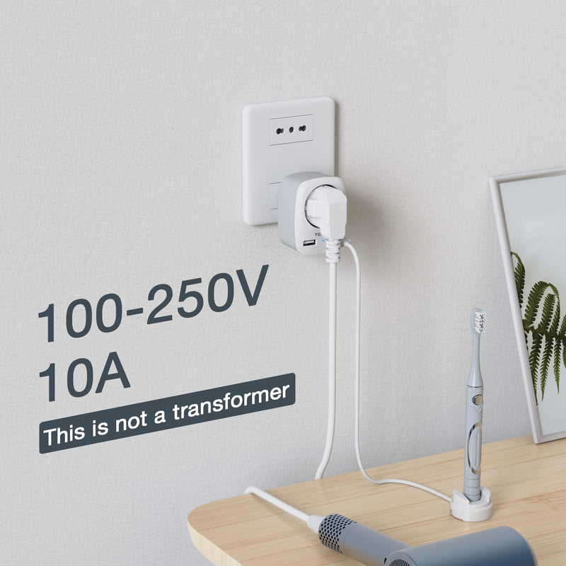 Tips: This is not a converter. This travel adapter is only suitable for devices with two voltages or global devices with an input voltage range of 100-250V.