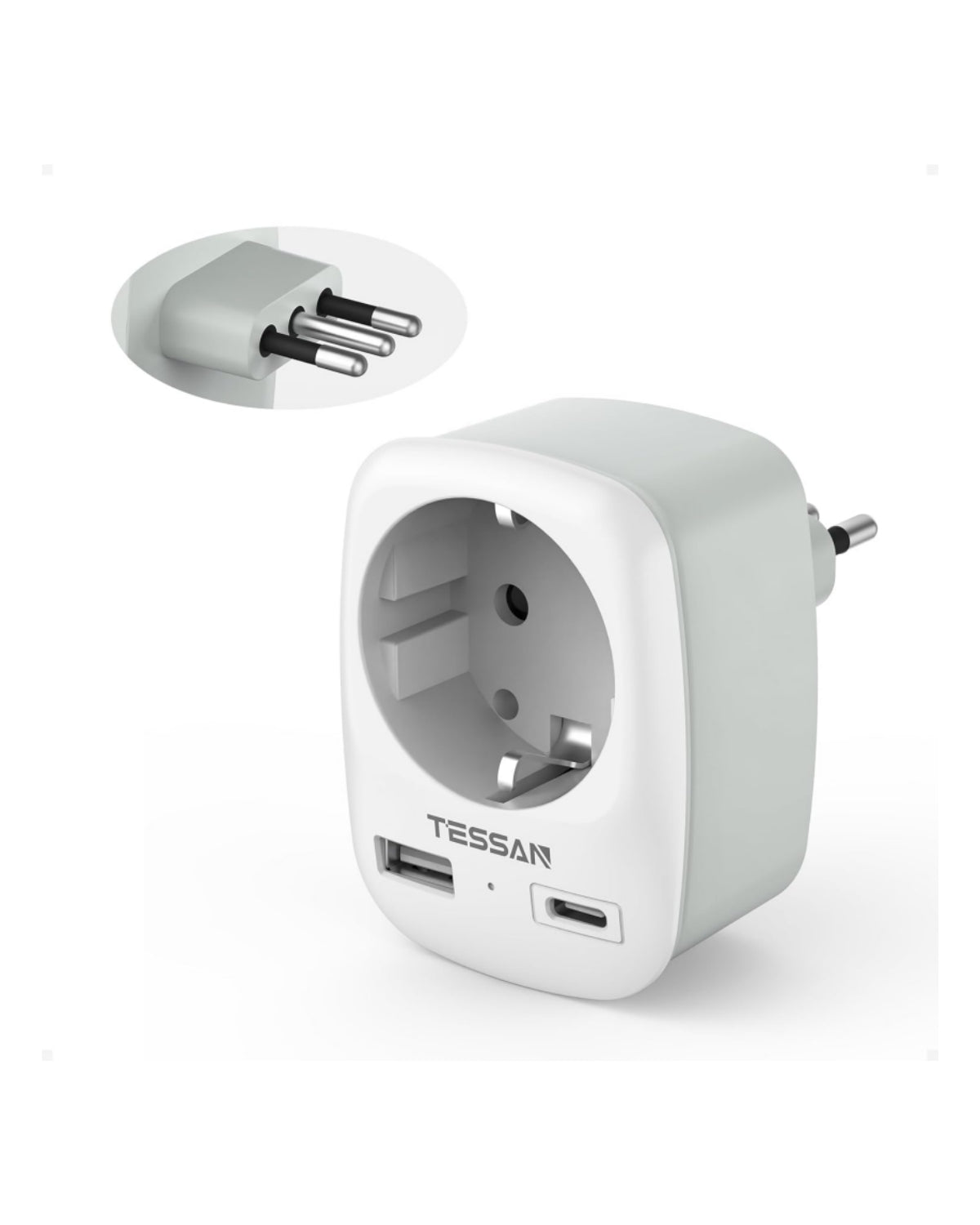 TESSAN Adapter Italien mit 2 USB 2,4A,Steckdosenadapter Italien Typ L