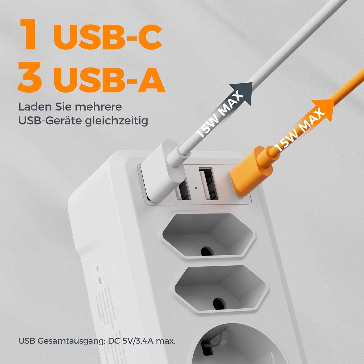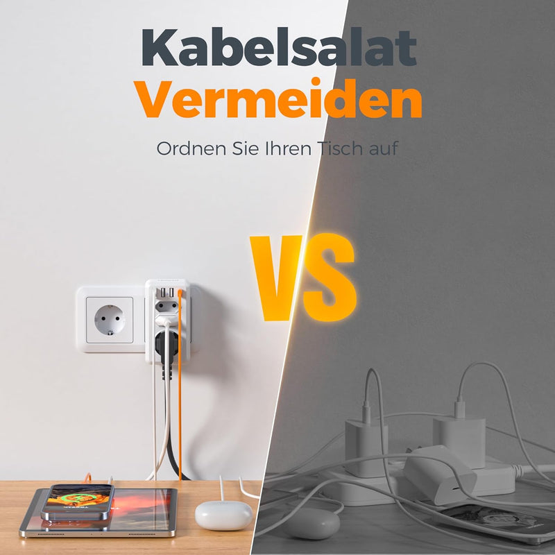 Mit bis zu 6 bzw. 7 gleichzeitig nutzbaren Anschlüssen eignet sich der Steckdosenadapter besonders für Haushalte mit vielen elektronischen Geräten. Smartphones, Tablets, Kopfhörer oder andere USB-Geräte lassen sich direkt über die integrierten USB-Ports laden, während die Steckdosen für klassische Haushaltsgeräte frei bleiben.