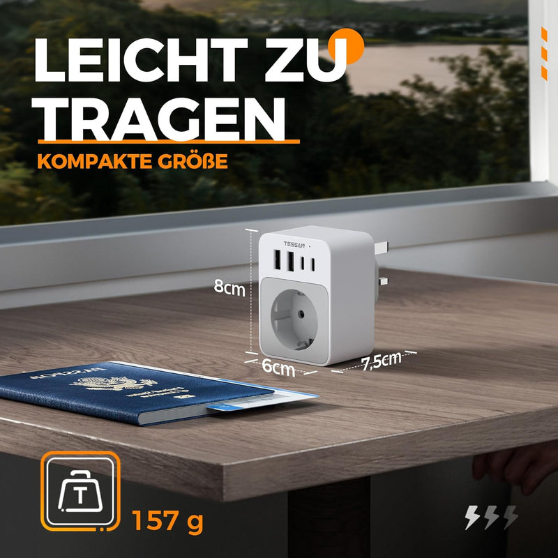TESSAN Reiseadapter England Typ G mit USB-C