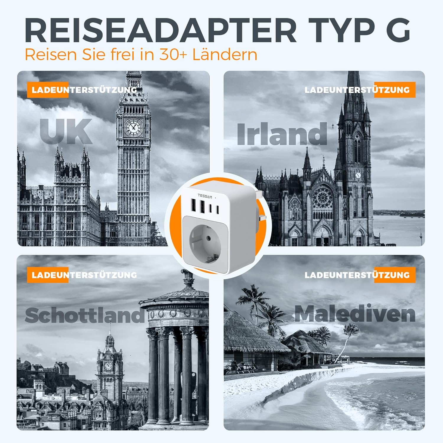 TESSAN Typ G Reiseadapter-Serie – Ihre zuverlässige Power-Station für UK, Irland & Dubai