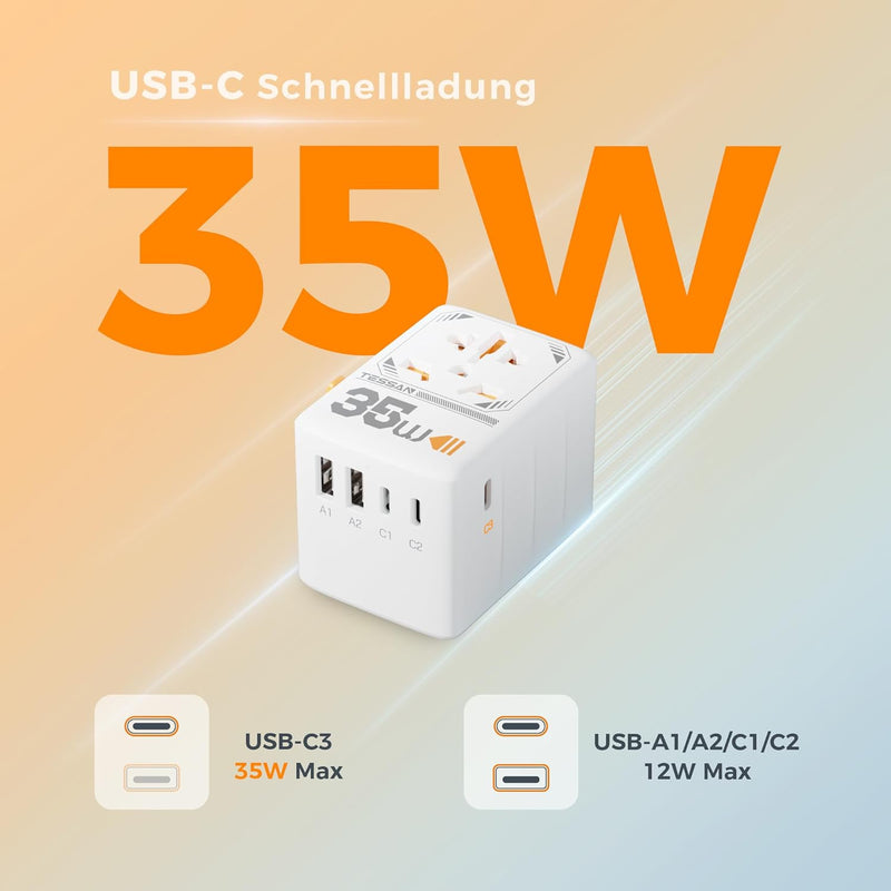 TESSAN GaN Universal Reiseadapter mit USB-Ports