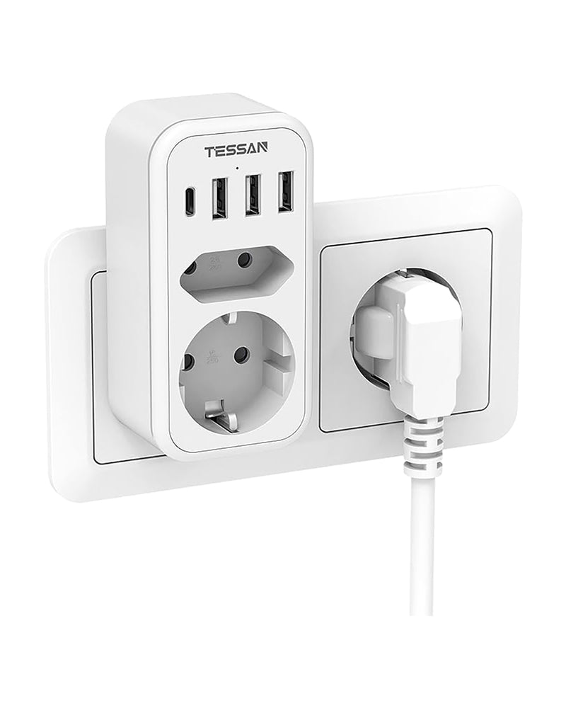 Tessan Doppelstecker für Steckdose mit 1 USB-C-Stecker und 3 USB-Adaptern
