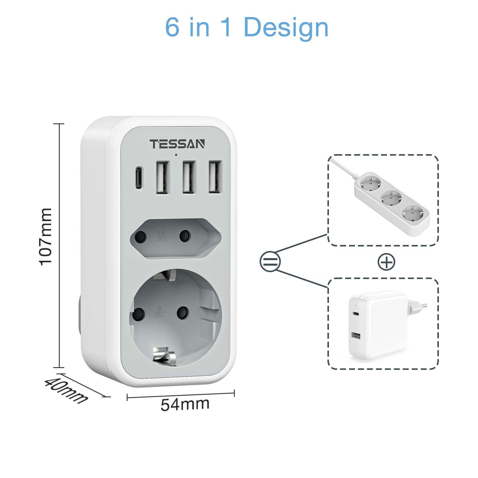 TESSAN UK Adapter England Deutschland Stecker mit 3 USB und 1 USB C