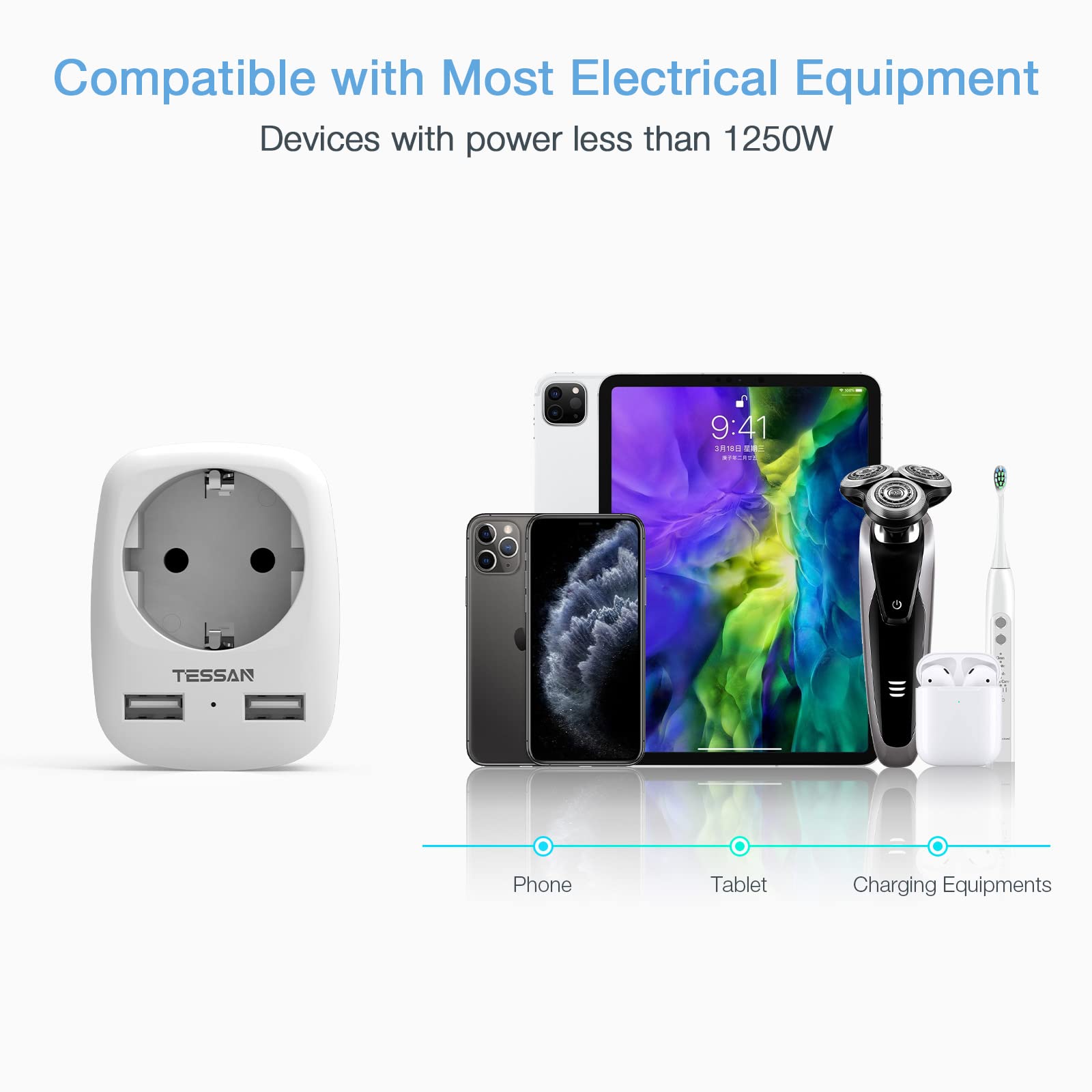 TESSAN Stromadapter Adapter USA Amerika Deutschland Stecker mit 2 USB(2.4A)