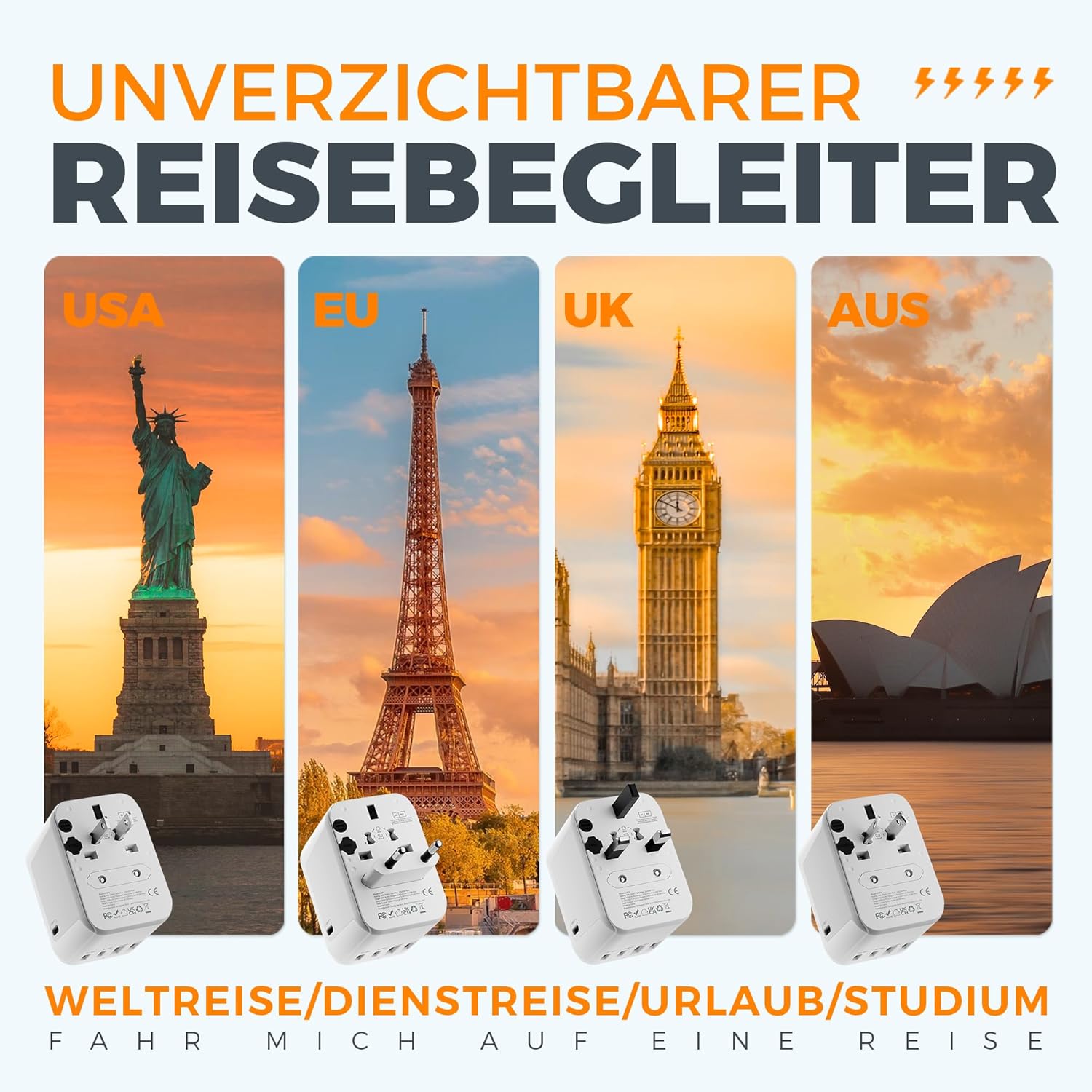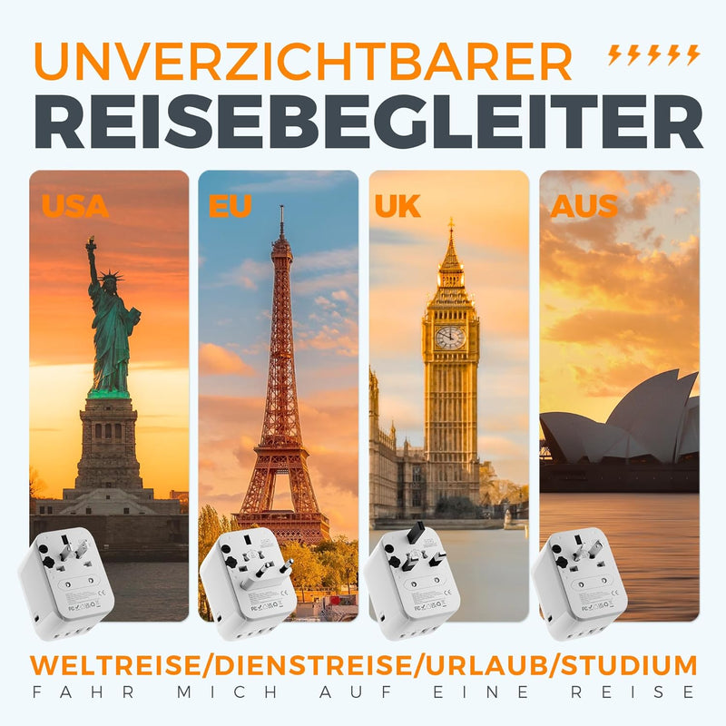 Vergessen Sie das Chaos aus verschiedenen Adaptern. Unser All-in-One Konzept deckt über 150 Länder ab: