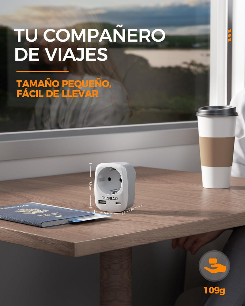 Mit einer Größe von 5,4 × 6,8 × 7,1 cm und einem Gewicht von nur 109 g ist der Adapter besonders platzsparend. Er nimmt kaum Raum im Koffer oder Rucksack ein und ist damit ein praktischer Begleiter für jede Reise.