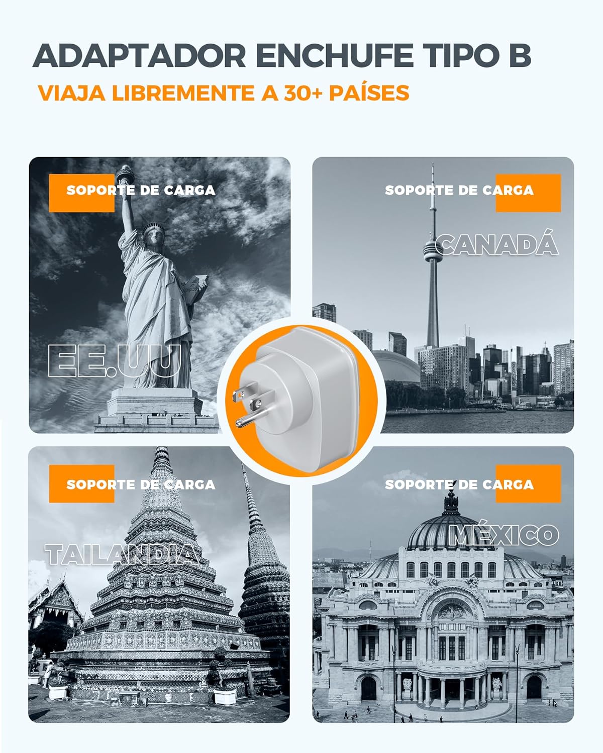 Dieser TESSAN USA Reiseadapter (Typ B) wurde für Reisende entwickelt, die ihre Geräte einfach und zuverlässig in Nord- und Mittelamerika sowie weiteren Ländern mit Typ-B-Steckdosen nutzen möchten. Dank seines kompakten Designs passt er problemlos ins Handgepäck und begleitet Sie entspannt auf Geschäfts- oder Urlaubsreisen.